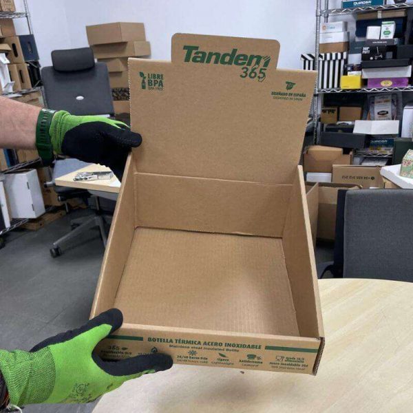 “Estoy haciendo un montón de vídeos de cajas expositoras. En este vídeo voy a enseñar un expositor en canal 3 de alta resistencia con impresión flexografía.”