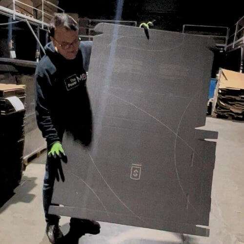 “Mirad qué pedazo de caja con impresión a dos caras… Es el modelo más grande que hemos fabricado hasta el momento. Esto no lo podíamos hacer antes en offset.”