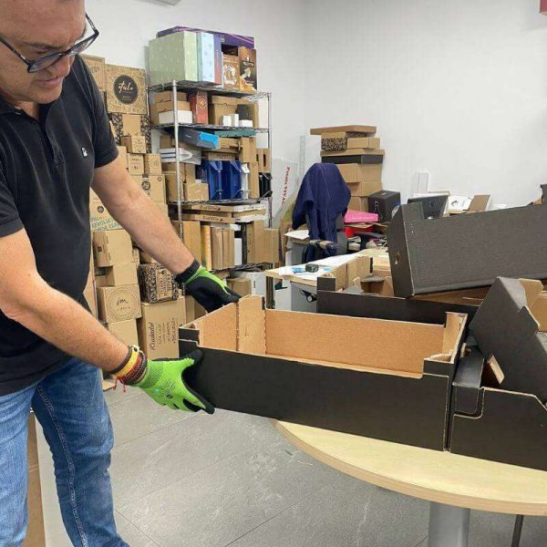 En Cartonajes Alboraya trabajamos exclusivamente con producciones industriales para garantizar eficiencia y precio competitivo. Por ello, la fabricación mínima de este modelo es de un tráiler completo, equivalente a 1.640 cajas por pedido.