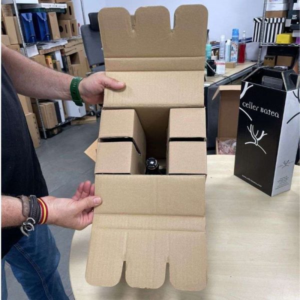 Este modelo de caja está especialmente pensado para tiendas online de vino, bodegas artesanas, clubs de vino o distribuidores de licores que realicen envíos frecuentes a nivel nacional o internacional. La estructura interior doble protege cada botella por arriba, abajo y en los laterales, manteniéndolas firmes y seguras incluso en transporte paletizado o con mensajería estándar.