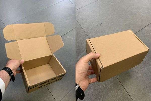 Caja automontable de cartón ondulado Canal B (3 mm) de alta resistencia, ideal para envíos de ecommerce de productos pequeños y delicados como perfumes, relojes, cosmética, parafarmacia, alimentación y más. Disponible en color marrón o blanco al mismo precio.