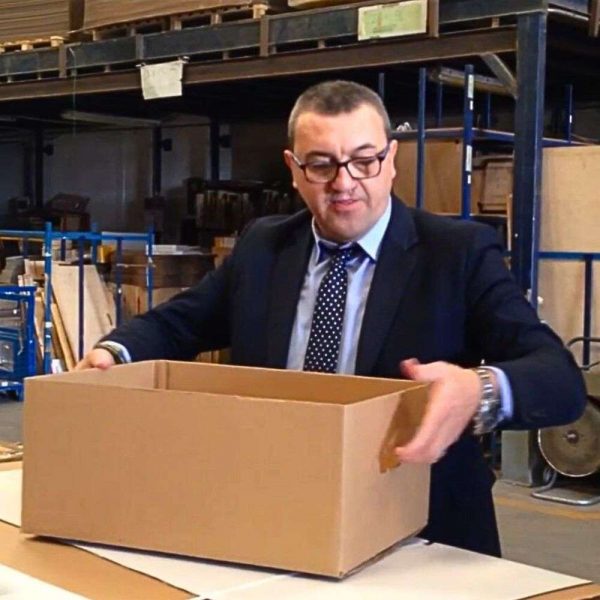 Montaje sencillo y rápido: Se arma en segundos doblando las solapas inferiores y asegurándolas con precinto industrial.